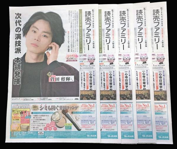 - 読売ファミリー★2016.5/11号 『ラヴソング』 菅田将暉 きらめきインタビュー 5部セット 近畿限定 読売新聞 非売品