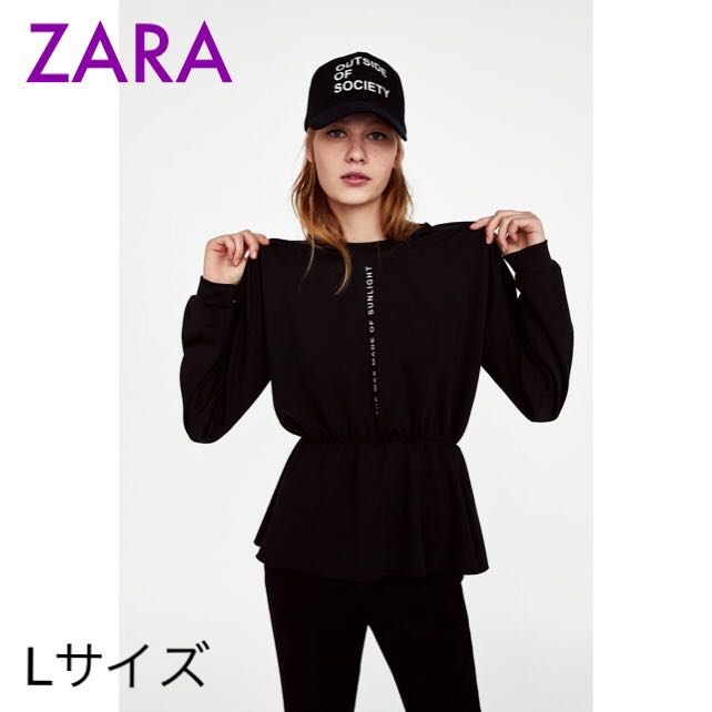 - sale!新品タグ付☆ZARAザラ☆テキスト入りペプラムディテールスウェットL