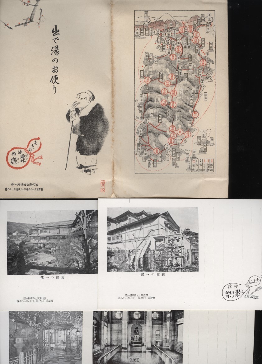 - あたみ 旅館聚楽 出で湯のお便り モノクロ絵葉書4枚 紙ケース付き :浴場・娯楽館・新館・菖館・伊豆熱海観光・熱海じゅらく・温泉宿