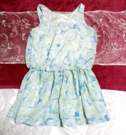 > 水色花柄ネグリジェノースリーブミニスカートワンピース Light blue flower pattern negligee sleeveless mini skirt dress