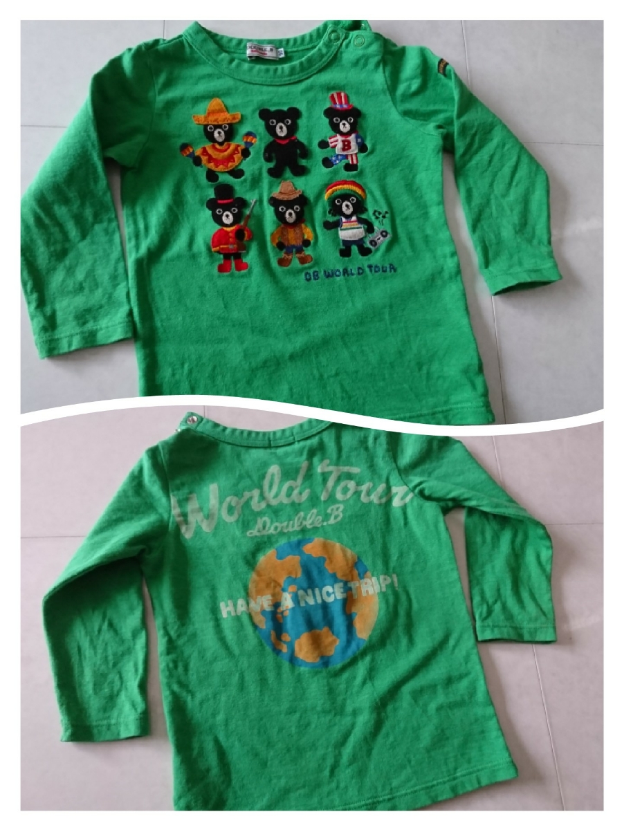 - 超美品ダブルBビー君緑長袖Tシャツ男の子女の子背中かわいい9080