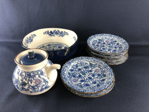 - 未使用品★ MARUKO マルコ 唐草漬物揃 中鉢 小皿 6客 醤油差し セット 箱あり管理1805 K-8
