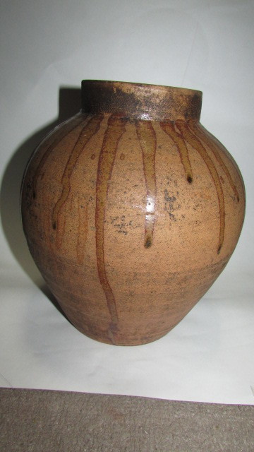 - 3000円値引き・即決商品(旧家・蔵出し)(古大堀相馬焼・味わいのある釉流れのある茶壷)貴重・珍品