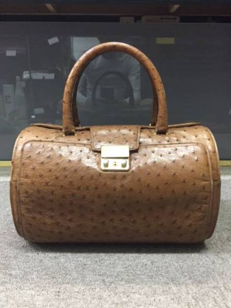- 美品!格安!本物オーストリッチ 筒型 ハンドバッグ ボストンバッグ