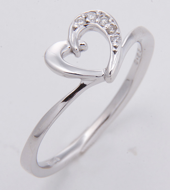 - 磨き済 K18WG ダイヤモンドリング入りハートリング 9号/ke8858