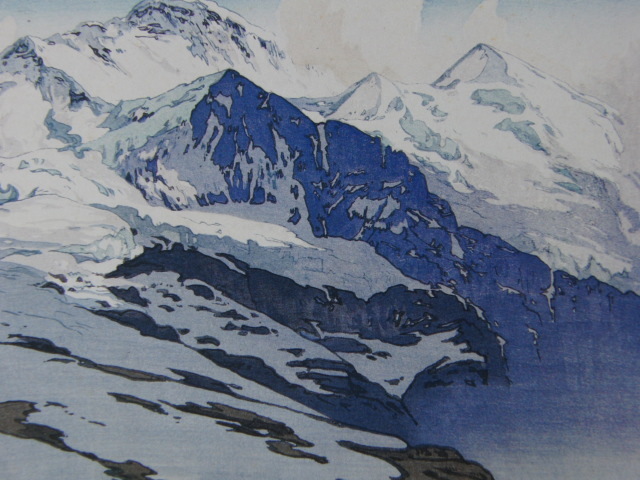 - 吉田博、ユングフラウ山、希少な額装用画集より、新品高級額装付、状態良好、送料無料、日本人画家