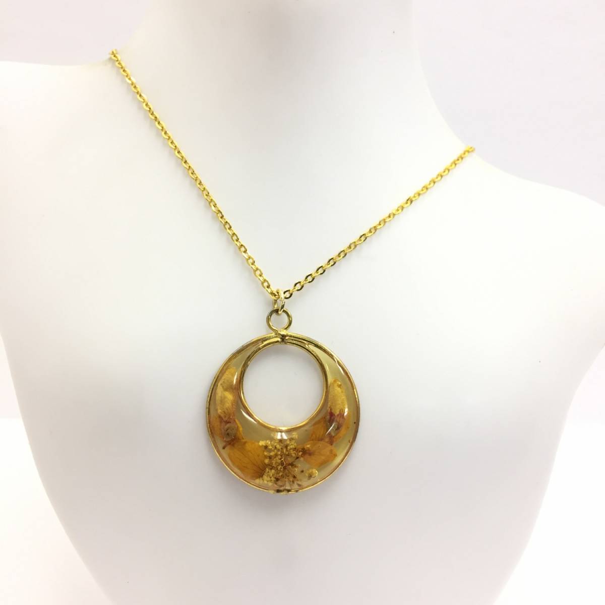 - 【ネックレス】約44cm ドライフラワー 花を閉じ込めたような神秘的なデザイン 三日月型 ゴールド 金色