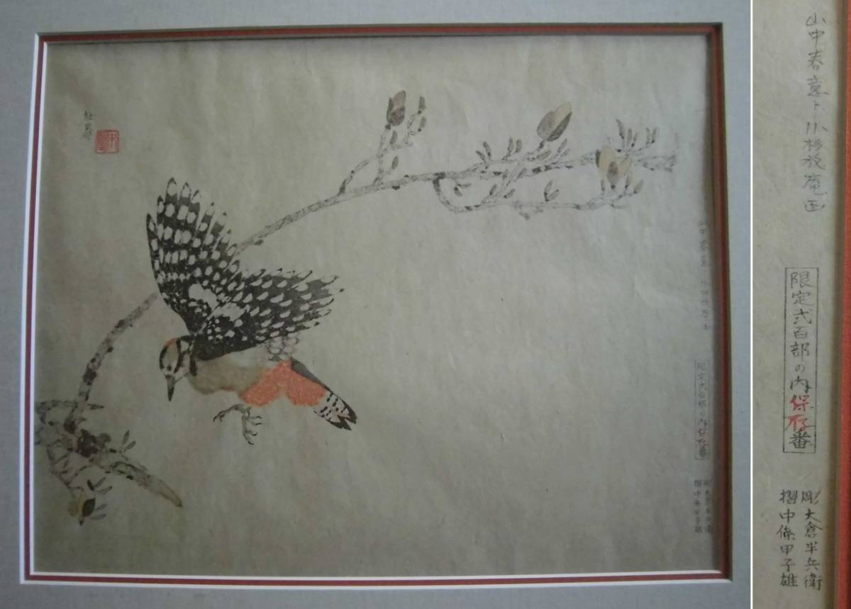 - 木版画 小杉放菴 「山中春意」 額装 ガラス 木製 弐百部限定 日本画 花鳥