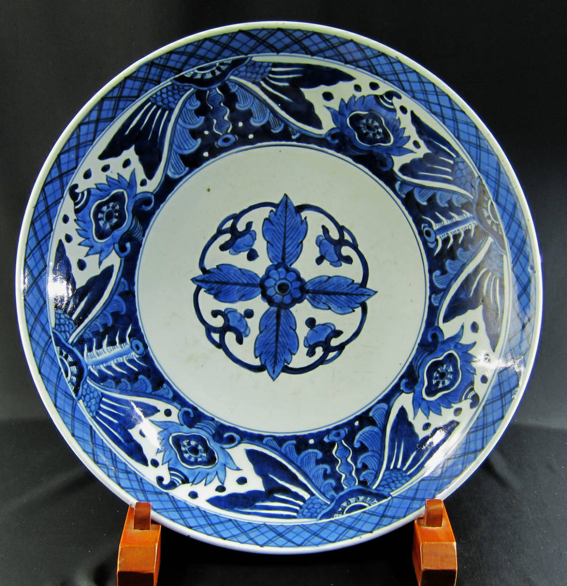 - 有田染付 魚尾図 大皿 高さ9.5×幅41cm