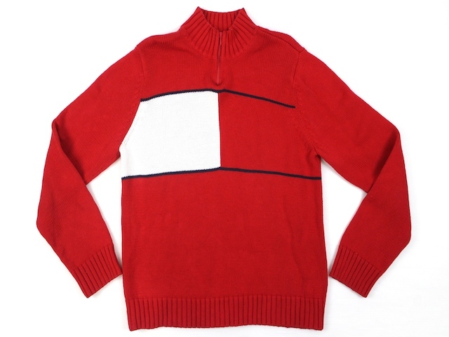 - TOMMY HILFIGER■ハーフジップコットンニット レッド/BOYS XL トミーヒルフィガー