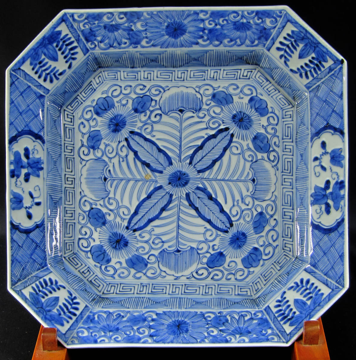 - 有田 角皿葉紋 線描 江戸後期 高さ5.3×幅29.5cm