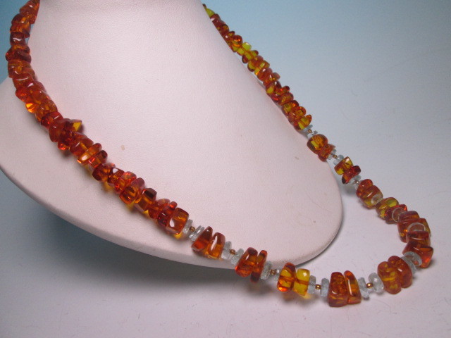 - ☆天然琥珀&貴石のデザインロングネックレス 54g