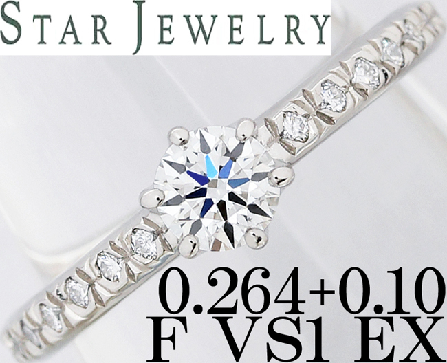 > スタージュエリー☆ダイヤ 0.264ct F EX VS1 0.10ct Pt950 プラチナ リング 指輪 婚約 0.2ct 0.25ct 一粒 7号♪鑑定書付