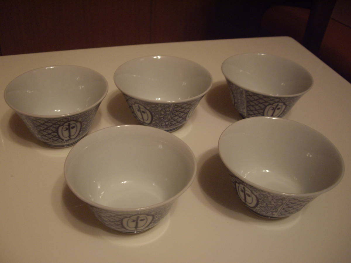 - 561 新品 未使用 湯飲み 5客セット 和柄 軍配の柄