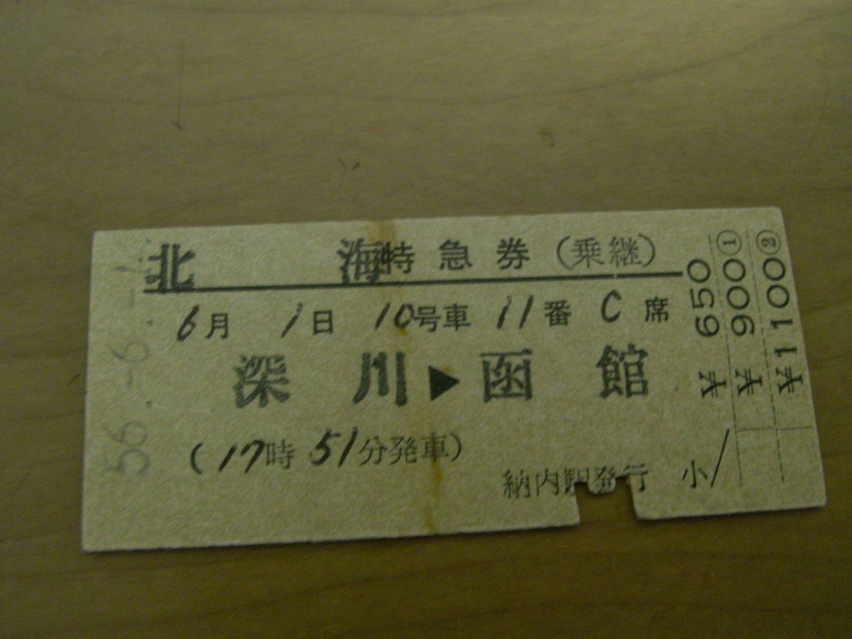 - 北海 特急券(乗継) 深川→函館 昭和56年6月1日 納内駅発行