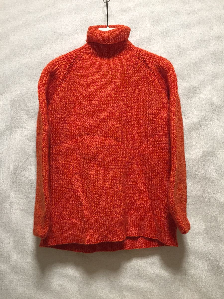 - ヨーロッパ古着 ハンドニットセーター ヘビーニットセーター タートルニットセーター オレンジ(赤黄)