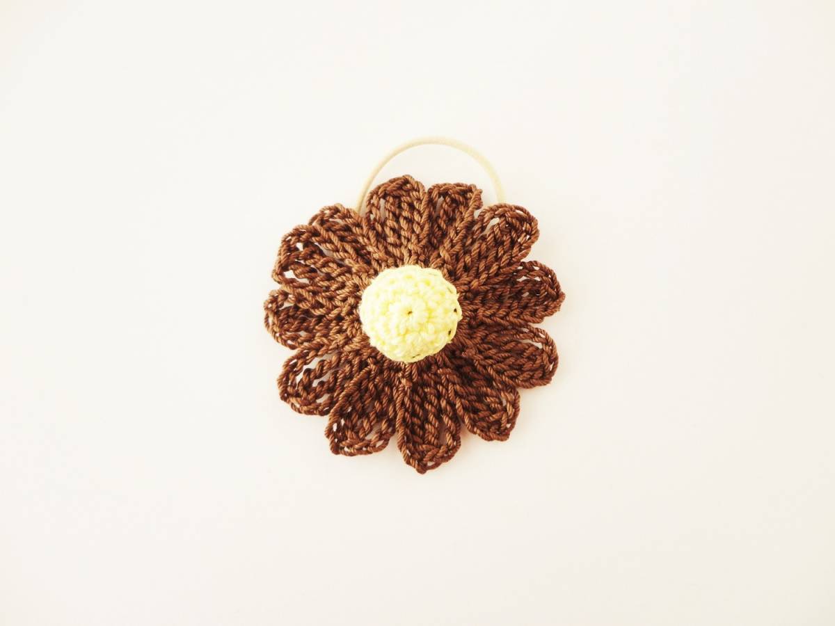 - 立体感がかわいいお花のヘアゴム*ブラウン*ハンドメイド*114*茶*カモミール