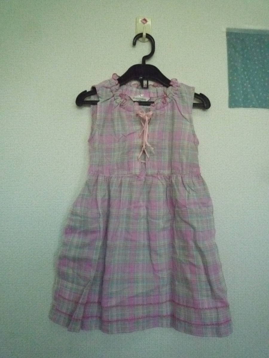 > ★ FLASH TONE 女の子 チェック柄 ノースリーブ ワンピ ピンク系 < 110 >