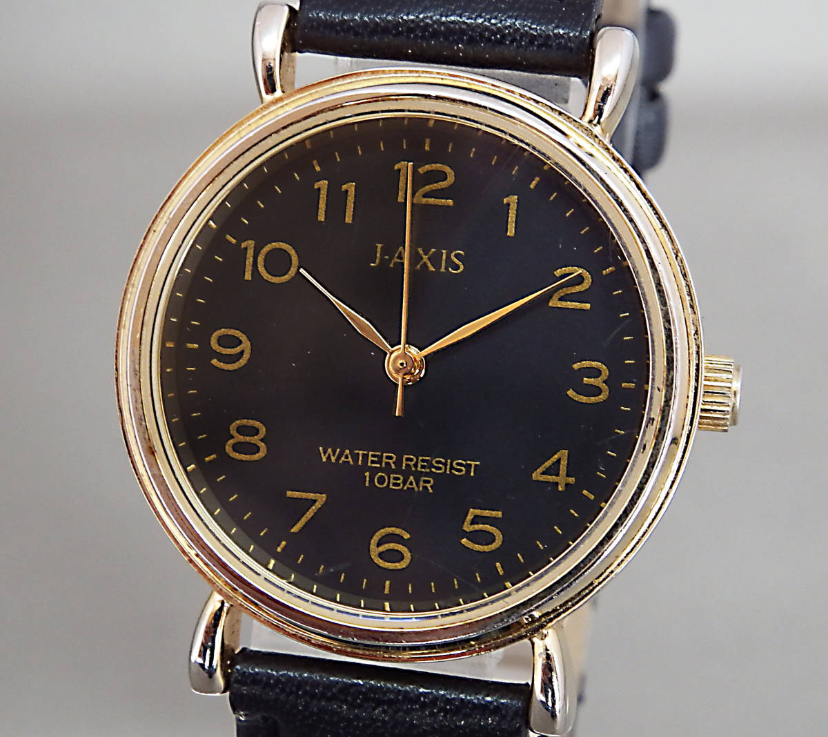 - EU-9596■J-AXIS DL-800 メンズ腕時計 3針 丸型 黒文字盤 中古
