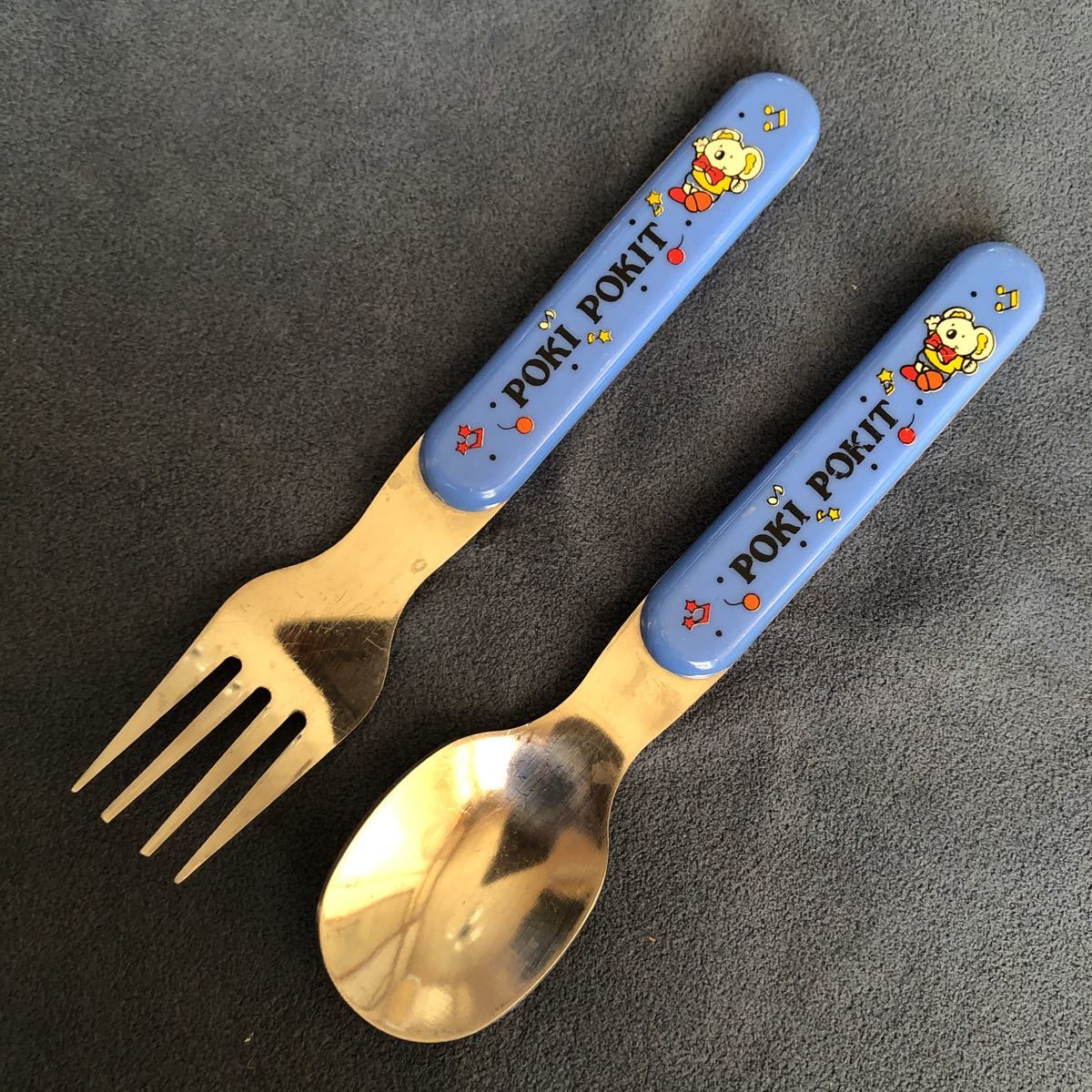 - カトラリー「ステンレス製 お子様用 スプーン&フォーク/コアラ柄」ケースなし・中古品