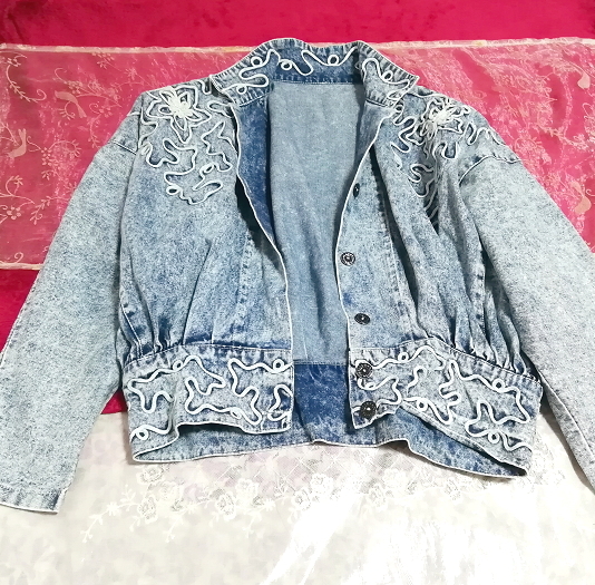 - デニム模様柄/カーディガン/羽織 Denim pattern cardigan