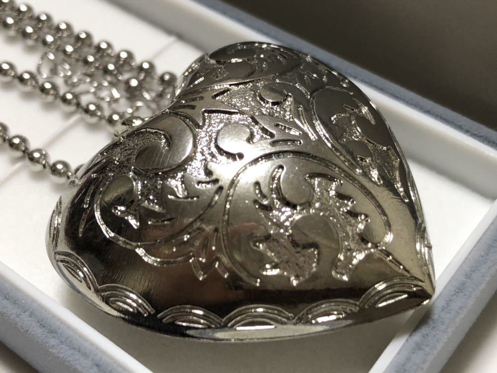 - シルバーカラー 35.0g 唐草細工 ボリョームハートのロングペンダントネックレスS