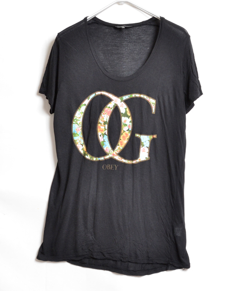 - ST1478 オベイ OBEY Tシャツ 女性 S 肩40 メールxq
