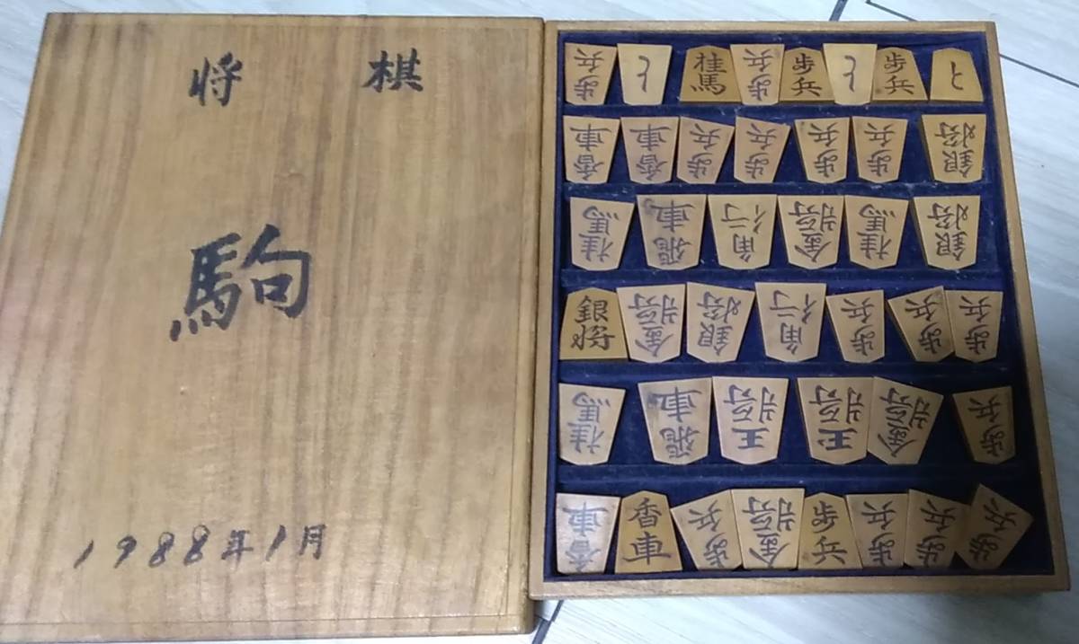- 天童将棋駒 重鎮 鈴木玉風 玉風作 錦旗 彫駒 桐駒箱付