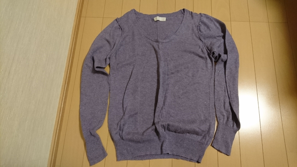 > ジーナシスJEANASIS 春秋薄手ニットカットソーF大きめサイズ紫ラメいり 一度使用 肩幅40.5脇下96丈55センチ