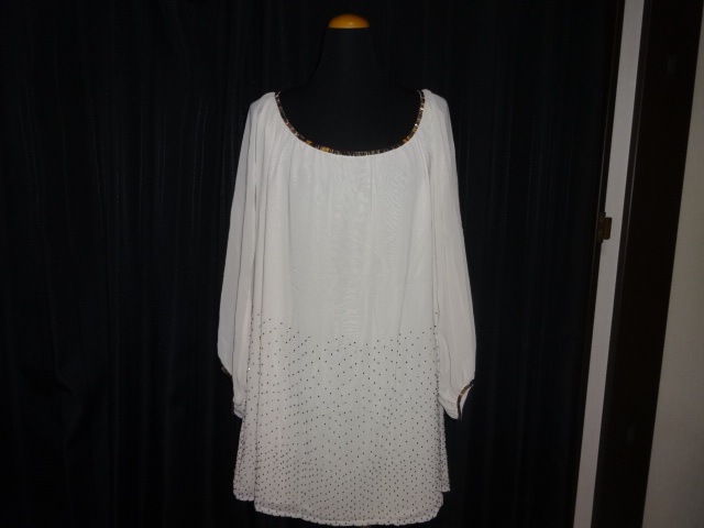> ■美品 JollyDays ジョリーデイズ 【大量ビーズ 衿・袖先も】 Uネック 長袖 ワンピース フリー F Mサイズ 9号 38号 2号 アイボリーベージュ