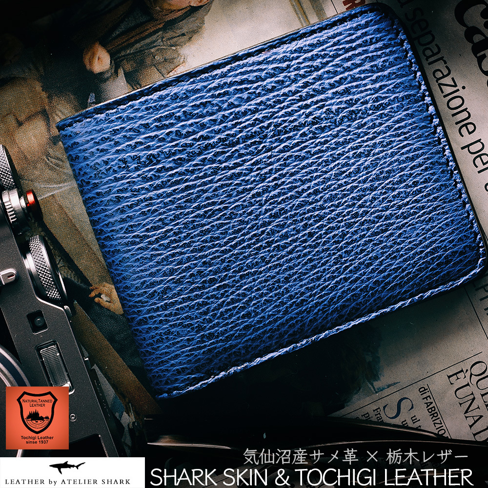- シャークスキン/サドルレザー/サメ革/レザーウォレット/ヌメ革/栃木レザー/二つ折り財布/牛革/dl110sh45bl