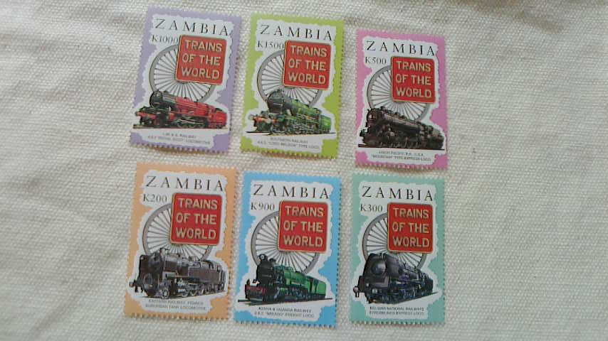 - ザンビア切手 ZAMBIA TRAINS OF THE WORLD 6枚セット