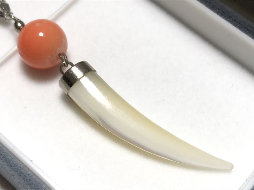 - 白蝶貝 珊瑚風 9.3g 牙 ペンダントネックレス