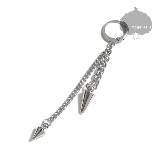 - YGG★新品 2スパイク スタッズ付き ロングチェーン ピアス シルバー 銀 片耳 シングル BTS JIN着