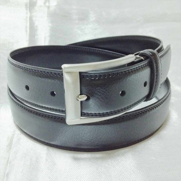 - フォーマル Wステッチ 牛革ベルト ブラック メンズ レザー 紳士