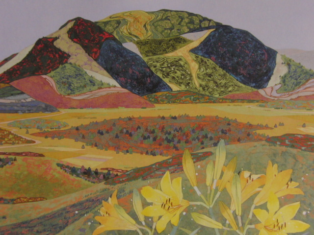 - 村越由子、「黄萱の丘」、希少な画集より、 新品高級額装付、状態良好、送料込み、日本人画家、coco
