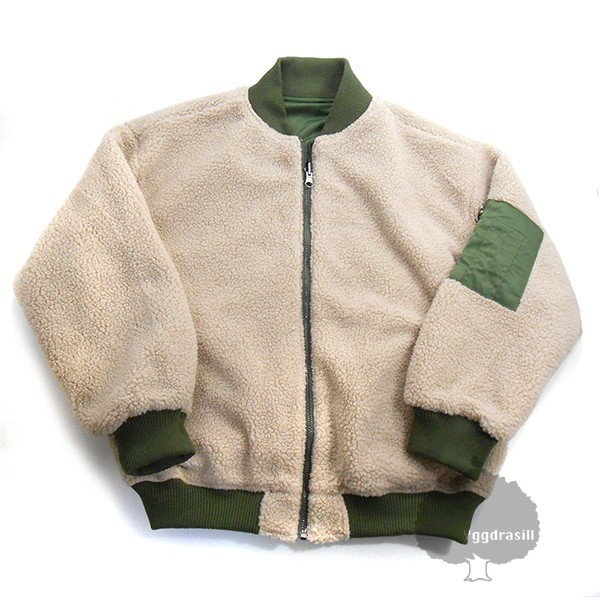 > YGG★新品 リバーシブル MA-1 ボア ジャケット ブルゾン レディース ベージュ×カーキ フリー オーバーサイズ FREE