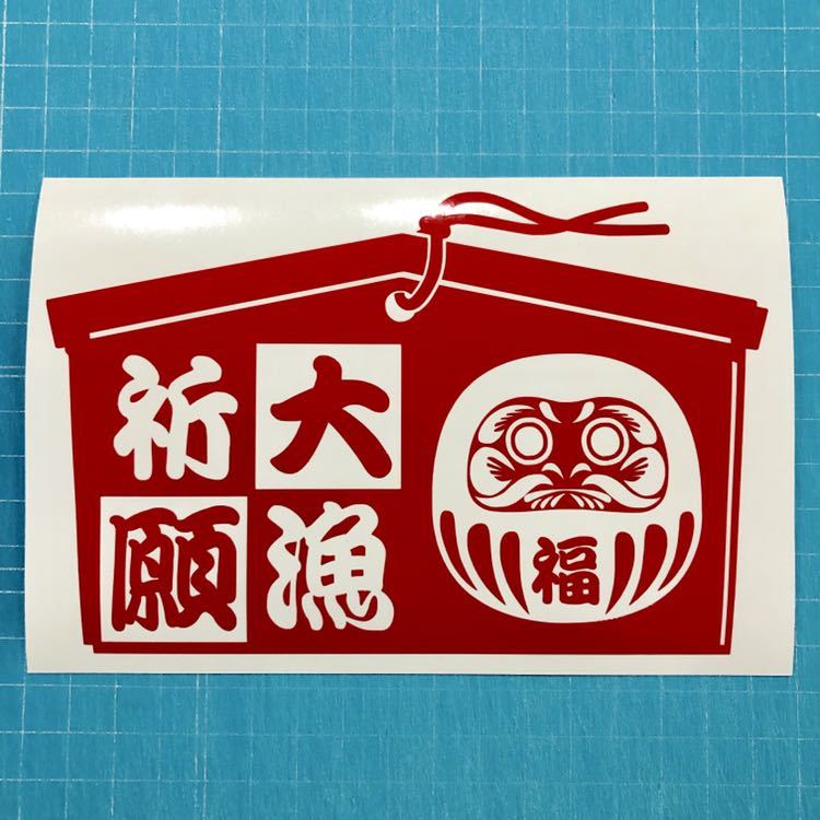 - 絵馬 大漁祈願 釣り ダルマ カッティングステッカー レッド