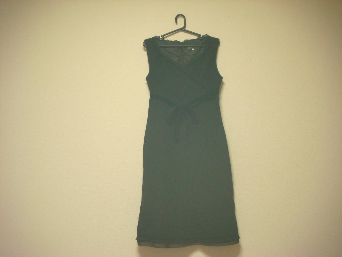 - クリアインプレッション カシュクール ベロアリボン付き ツイード ワンピース 黒 3 二次会ドレス 秋冬 毛100% 秋冬