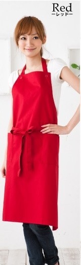 - 送料無料 シンプル エプロン カフェ風 無地 作業エプロン 男女兼用 レッド