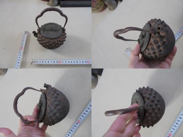 - AKa6571◆隼◆時代 鬼あられ 小 鉄瓶 古玩旧家蔵出骨董初だし