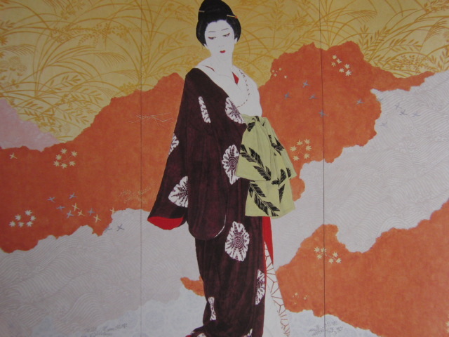 - 堀泰明、【稲舟(坂東玉三郎)】、希少な額装用画集より、新品額装付、状態良好、送料込み