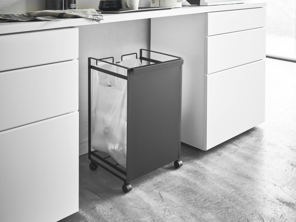 - 2分別 ダストワゴン (黒) レジ袋 分別 ダストボックス ゴミ箱 キャスター付き キッチン ブラック おしゃれ 山崎実業 タワー