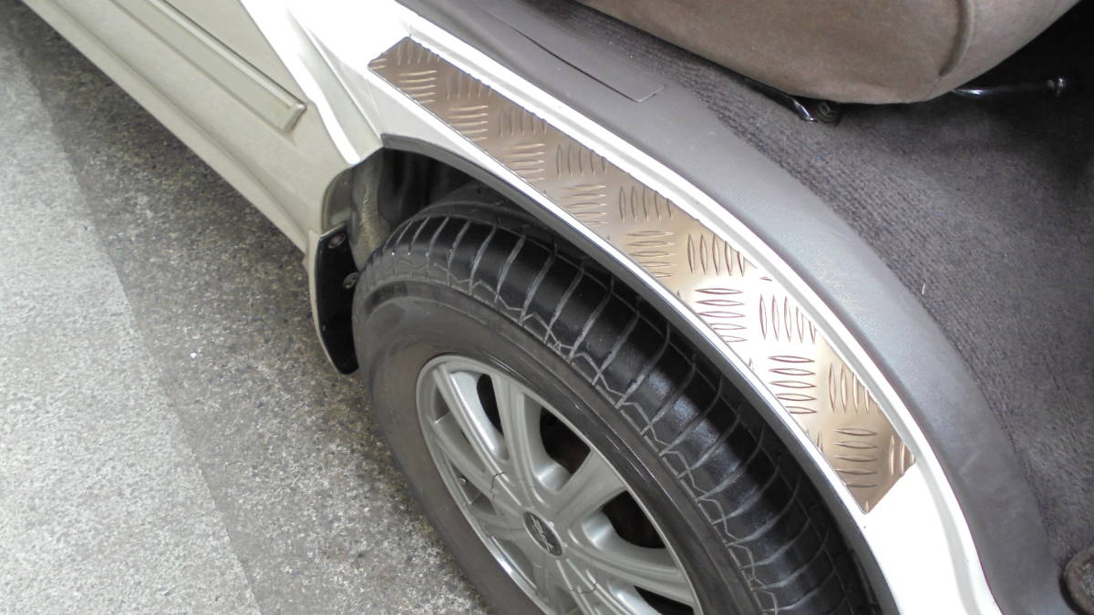 - ハイエース 100系 フロントドアスカッフプレート アルミ製縞板 アルマイトブロンズカラー