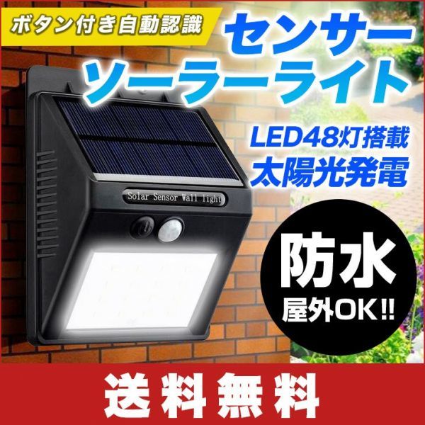 - 【送料無料】センサー付き ソーラーライト 48個 COB LED使用 人感ソーラーライト自動充電 屋外照明 防水 センサーライト