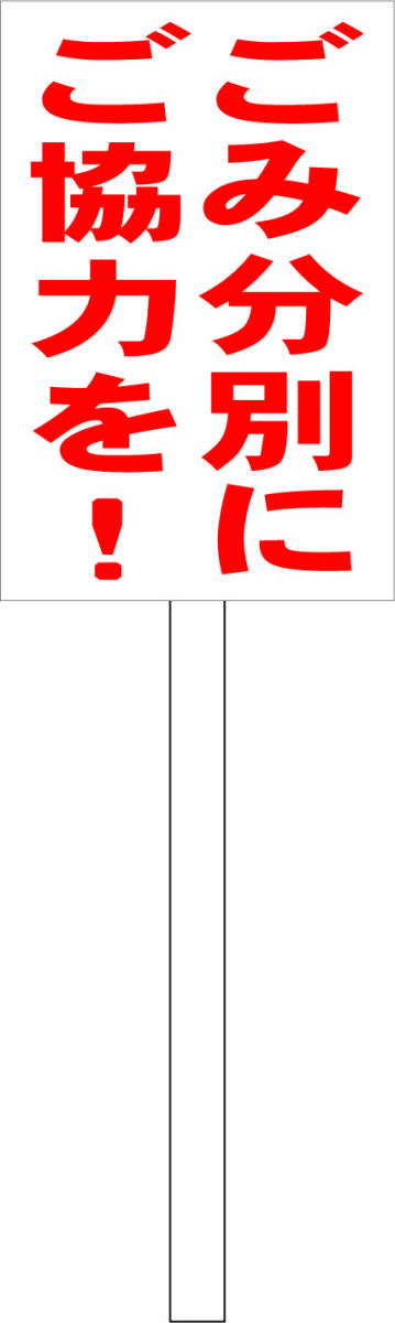 - シンプル立札看板 「ごみ分別にご協力を(赤)」その他 屋外可(面板 約H45.5cmxW30cm)全長1m