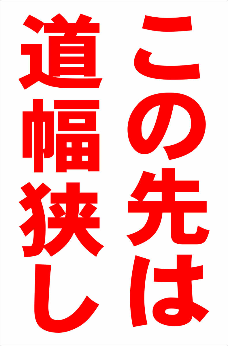 - シンプル縦型看板「この先は道幅狭し(赤)」【駐車場】屋外可