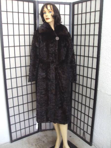 - ダークミンク・セクション毛皮コート サイズ2-4 ベルトつき