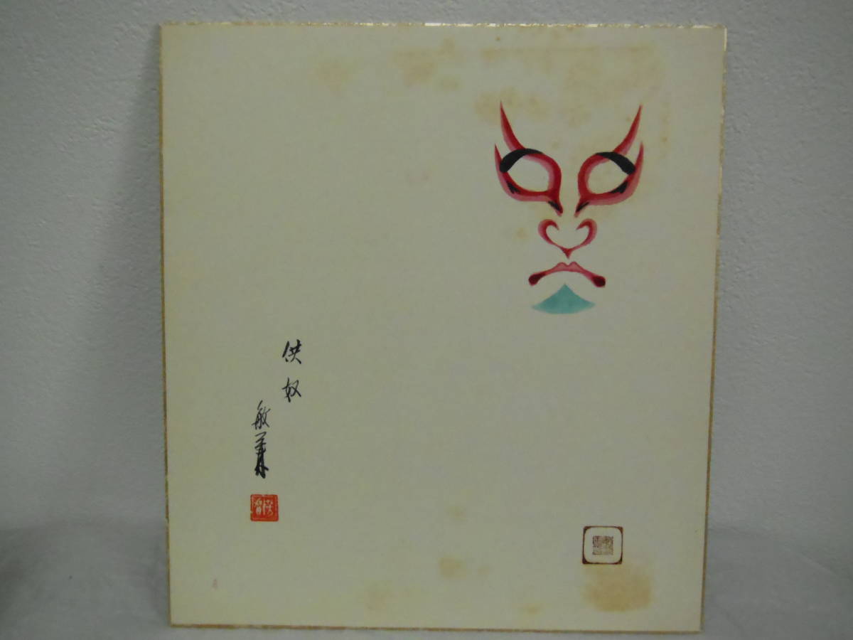 - ●《 敏兼 隈取 「供奴」 肉筆 色紙 》 歌舞伎 書画 書 掛け軸 茶道具 まくり