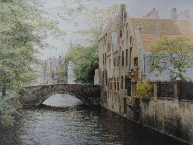 - 芦田芳生、【古都の運河 ブルージュ ベルギー】、希少な大判額装用画集より、美品、日本人画家、新品額装付、送料込み